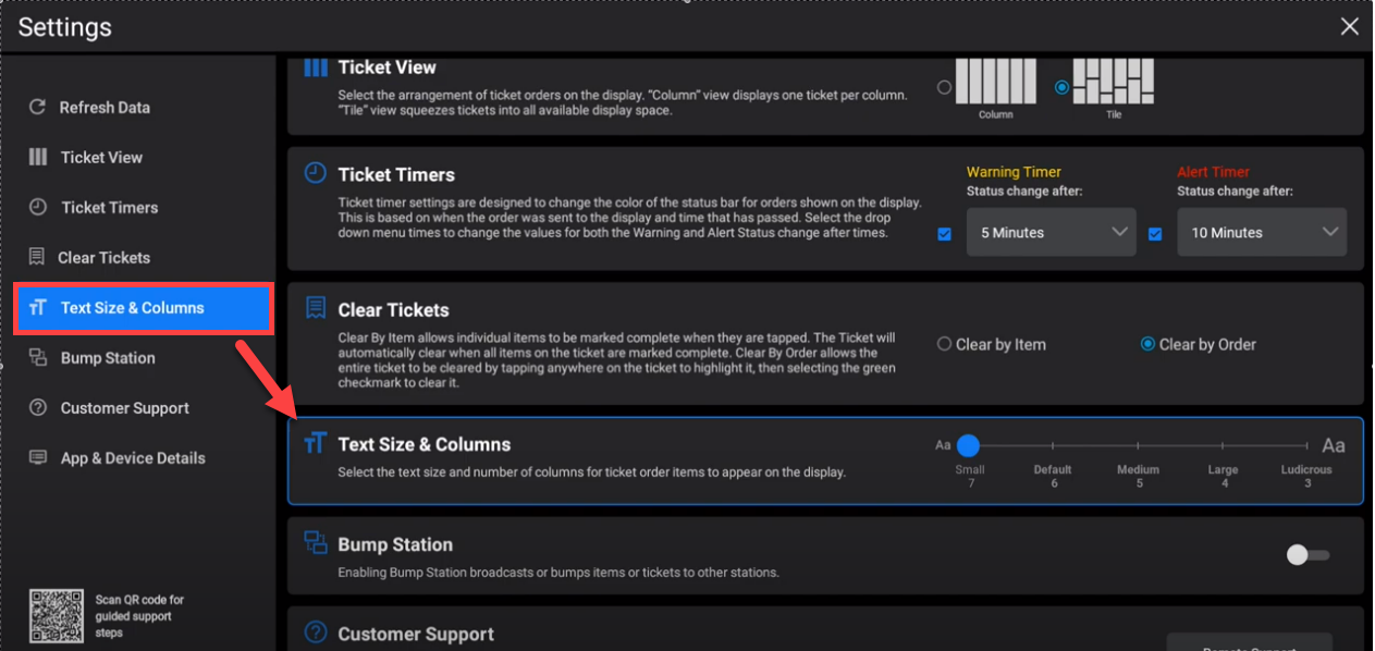- Select the desired text size and the number of columns for the Text Size & Columns setting.