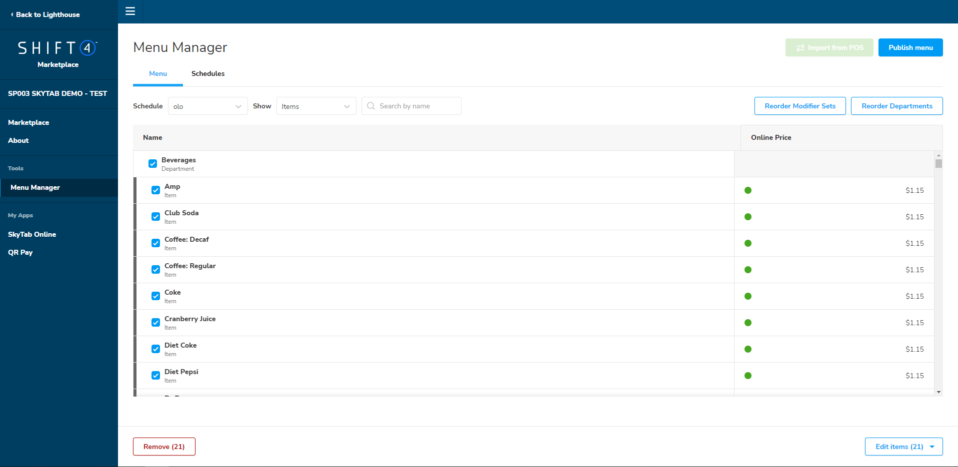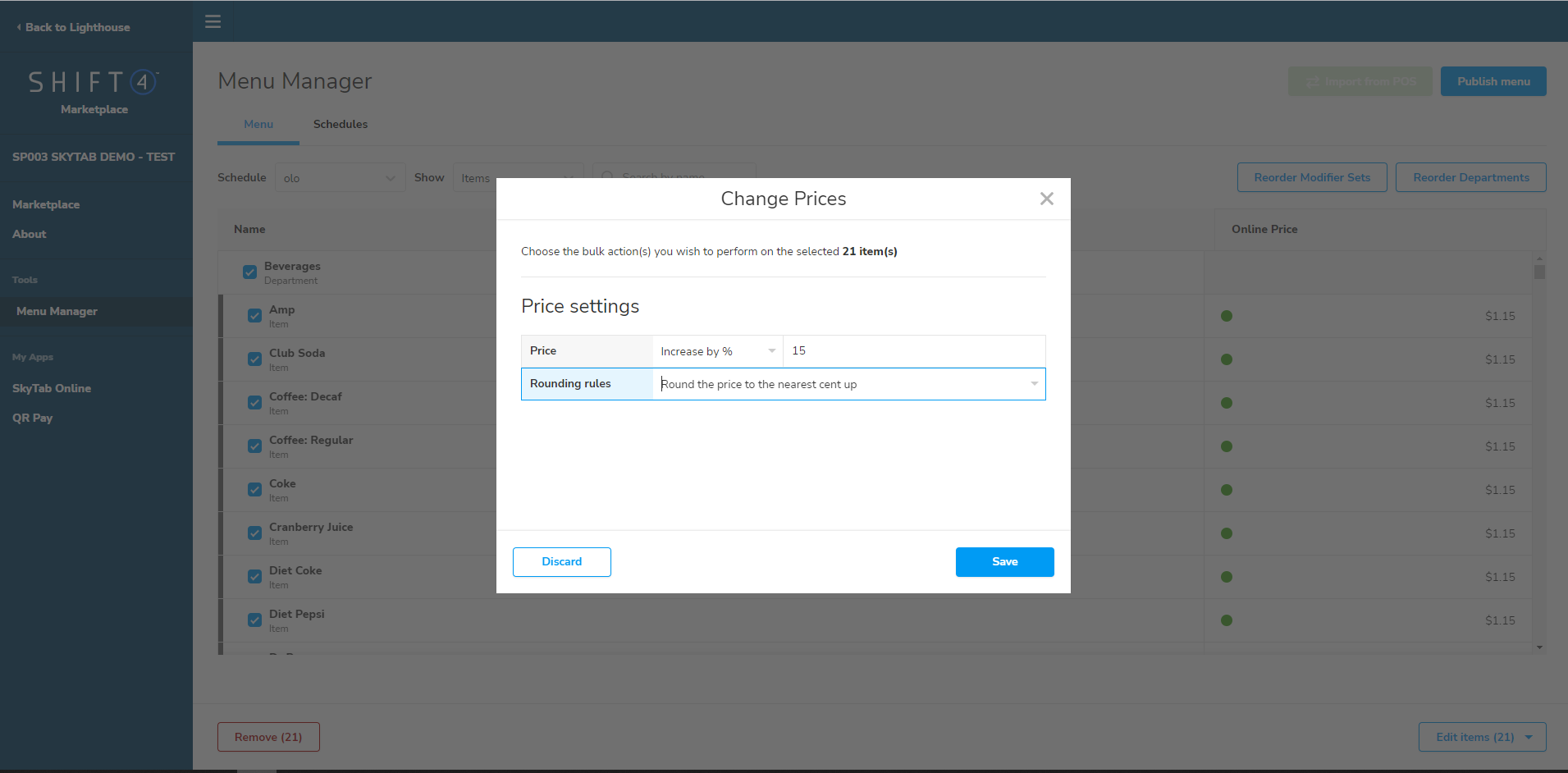 - On the bottom right select 'EDIT ITEMS > Change Prices