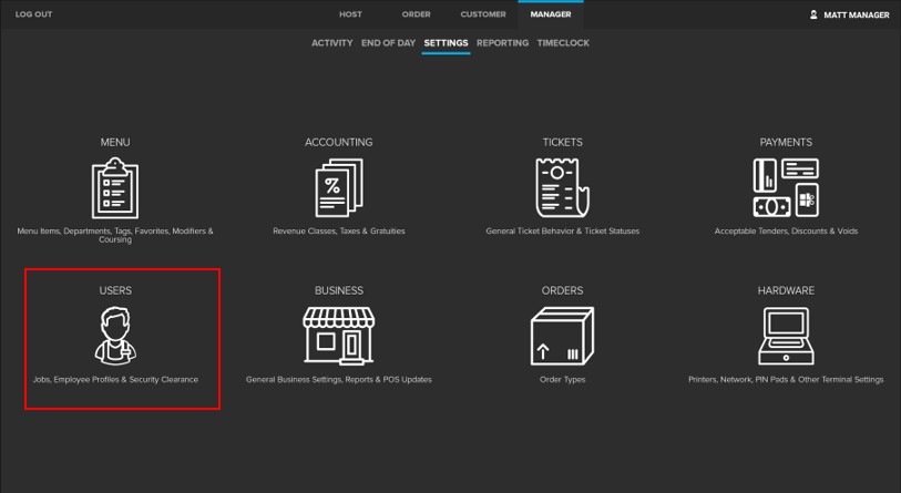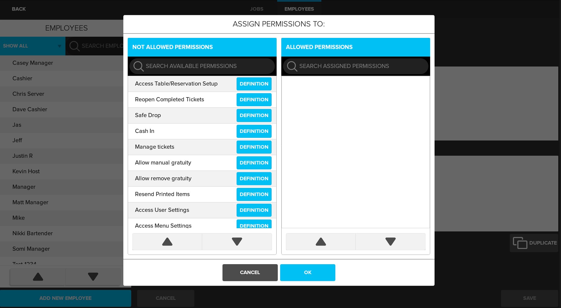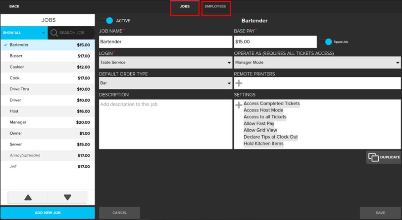Settings/Permissions: These are specific permissions applied to the job/ Employee. Click in this field to access the full options: