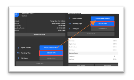 4. If tips are pending, tap Adjust Tips to adjust and finalize