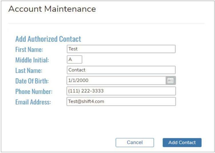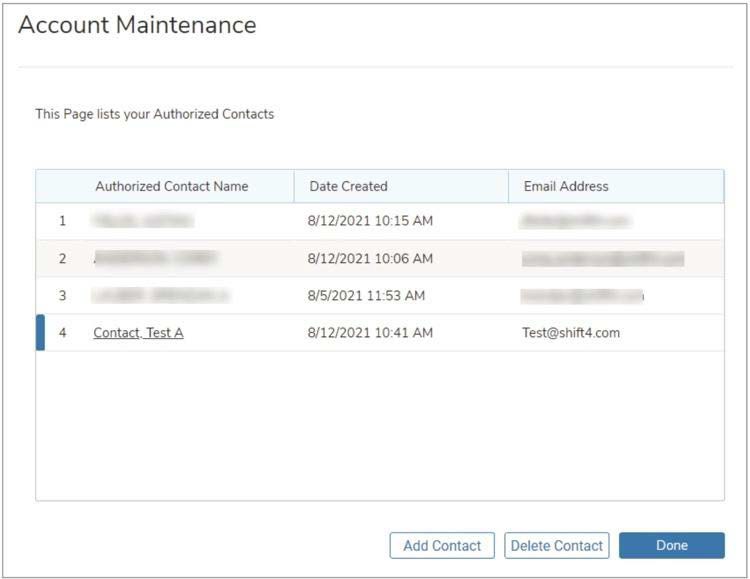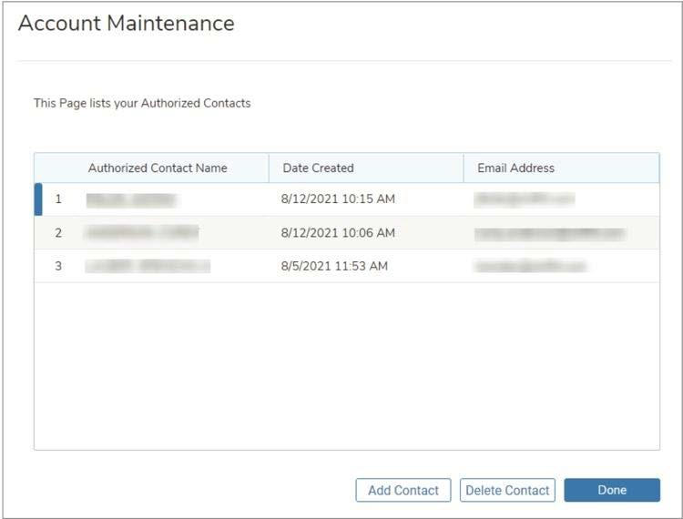 Log into Lighthouse Business Manager as an administrator. Access the Account Maintenance tab and select Manage account authorized contacts.