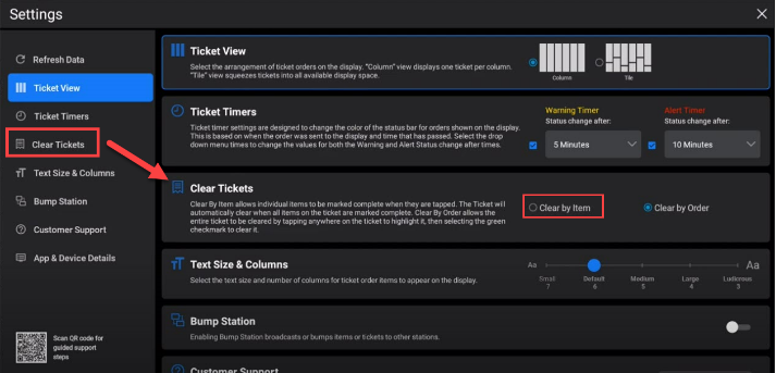 Set up Clear Ticket Settings for Prep Stations on SkyTab KDS