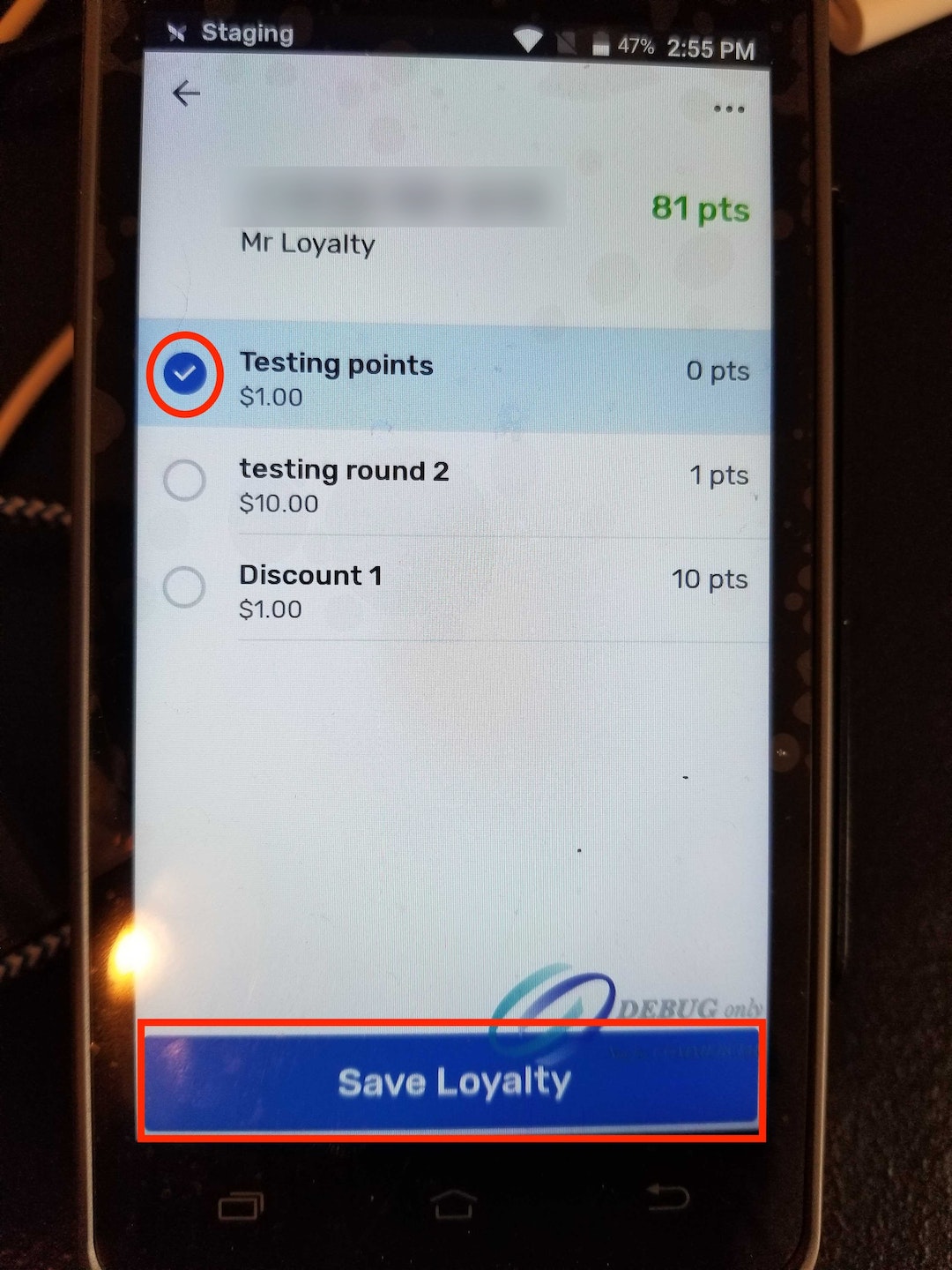 Seleccione el descuento adecuado y pulseGuardar lealtad.