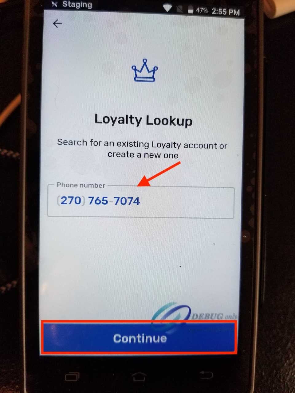 Introduzca un número de teléfono en el campo proporcionado y, a continuación, pulseContinuar.