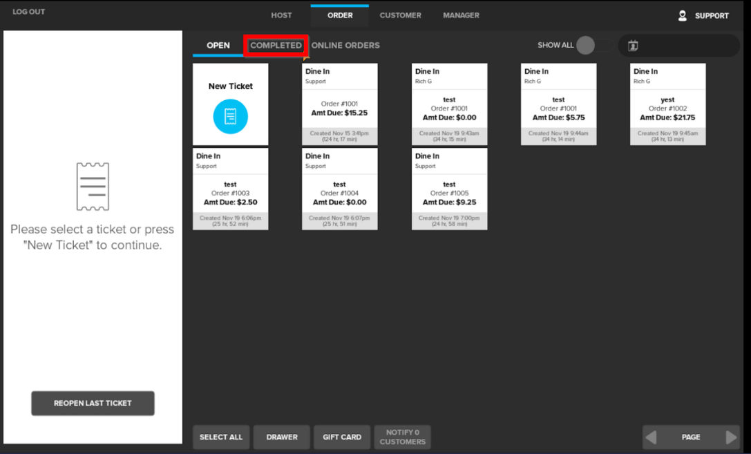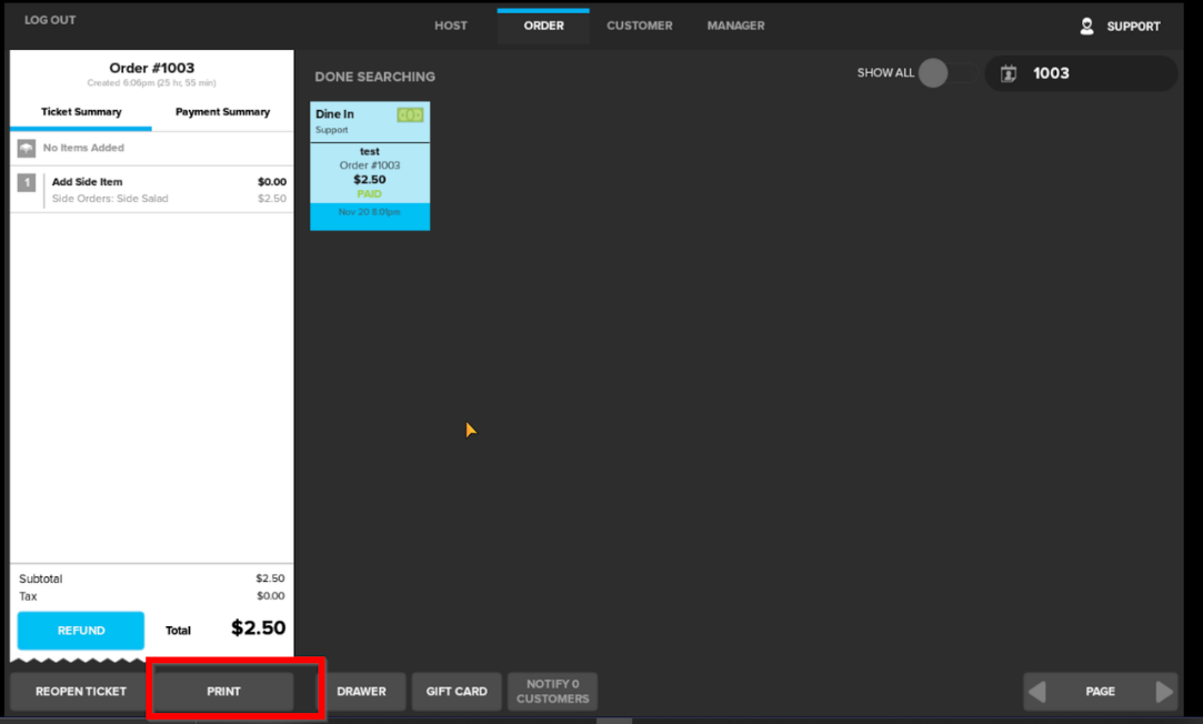Resalte el ticket correcto seleccionándolo y luego seleccione "impresión".